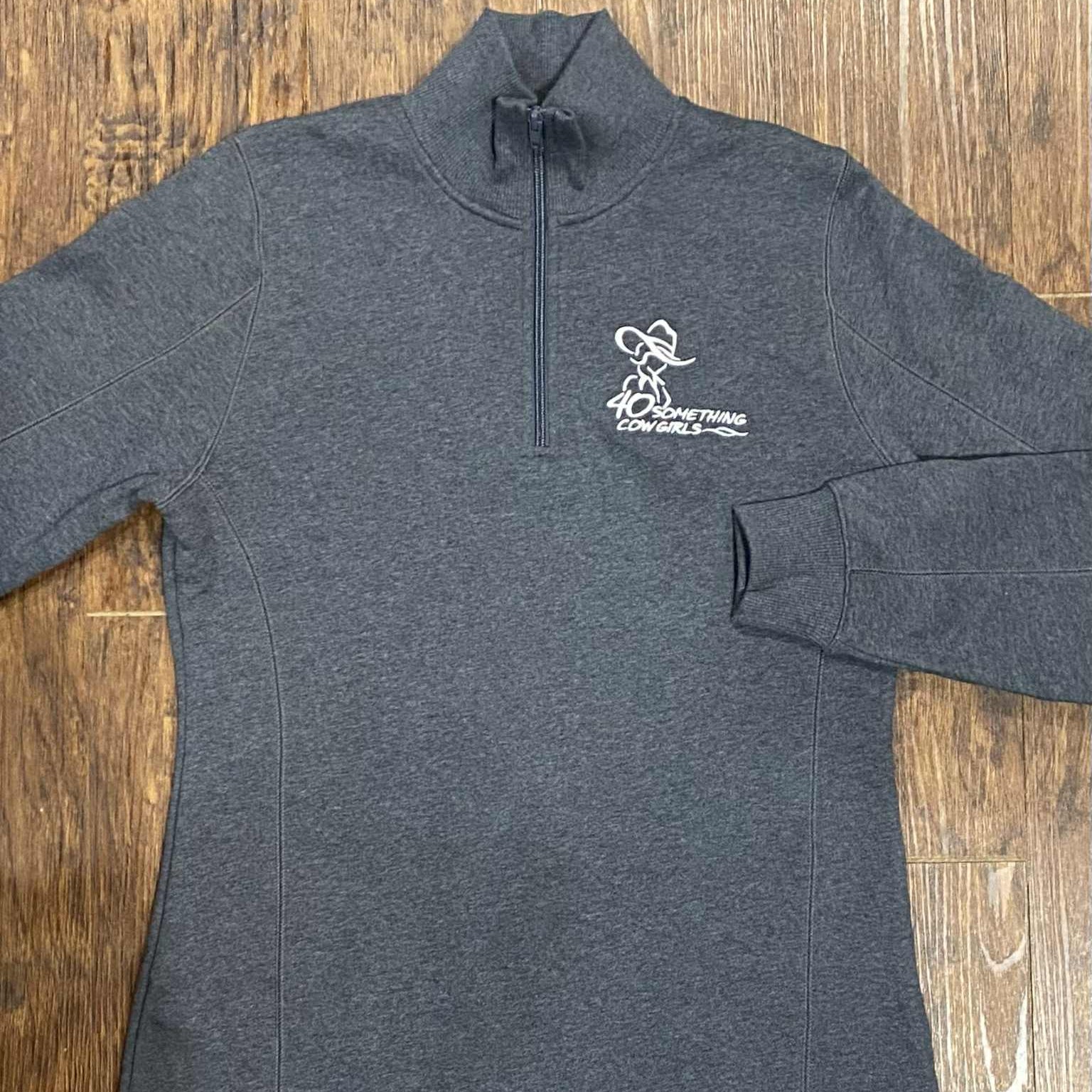 🤠Stay warm while showing off your cowgirl pride with our 40 Something Cowgirls Quarter-Zip Pullover. Designed with comfort and style in mind, this midweight layer is perfect for everything from the barn to a night out with the gals. Ladies Fit.