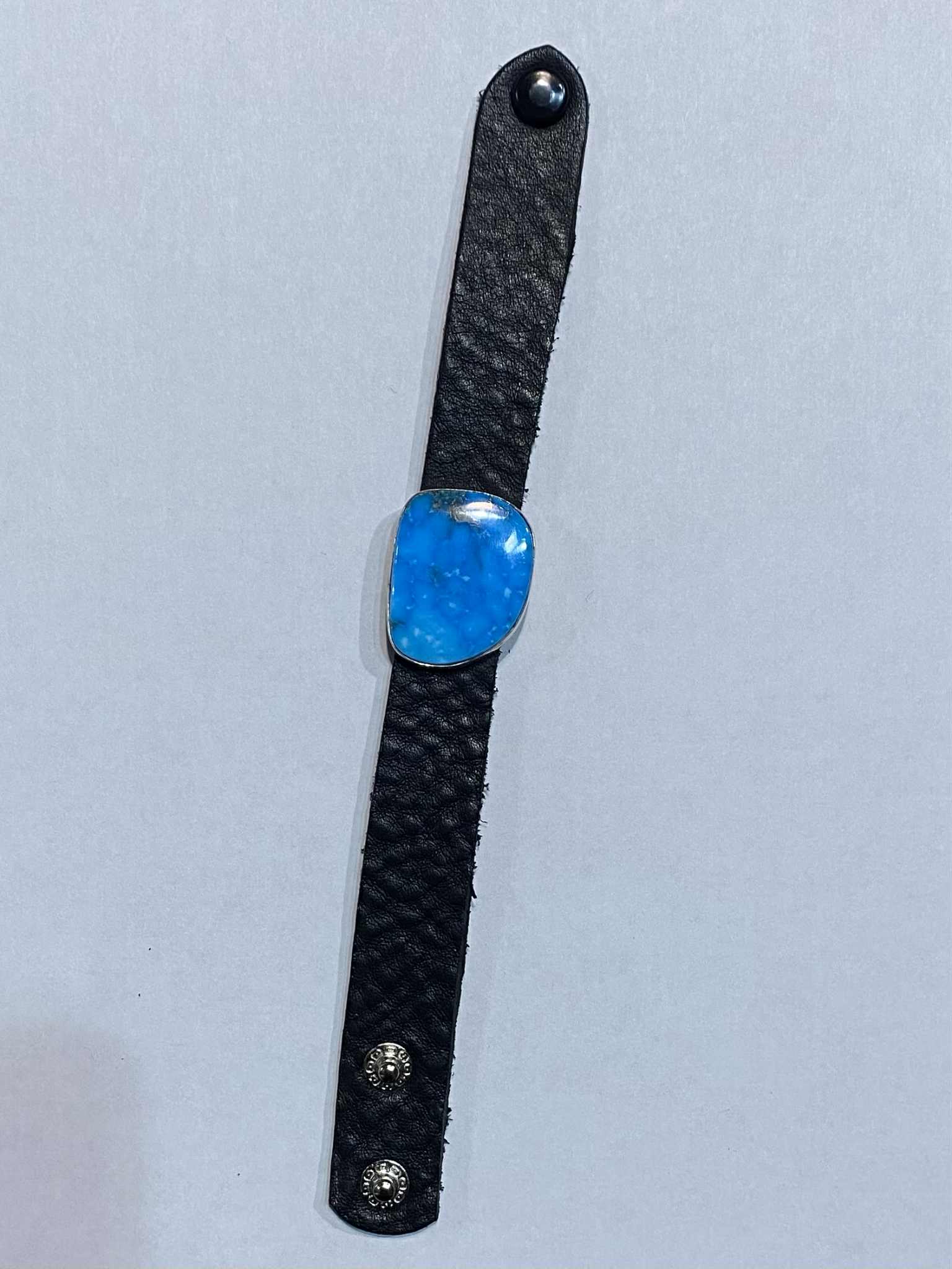 Bold, modern, and western to the core — the Turquoise Range Bracelet in black leather is here to make a statement. Featuring a striking blue stone centerpiece set against a textured black leather band, this piece is made for the cowgirl who walks her own line.